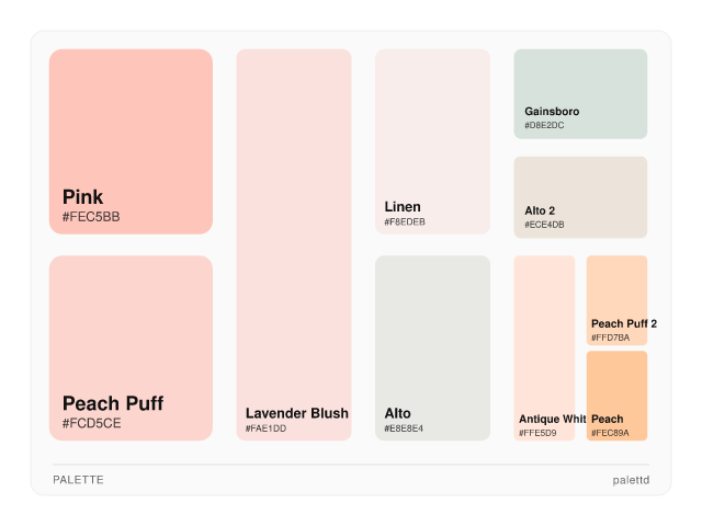 #FFBE98#FFD3B5#FFCAB0#FFDDD2#FAE1DD
