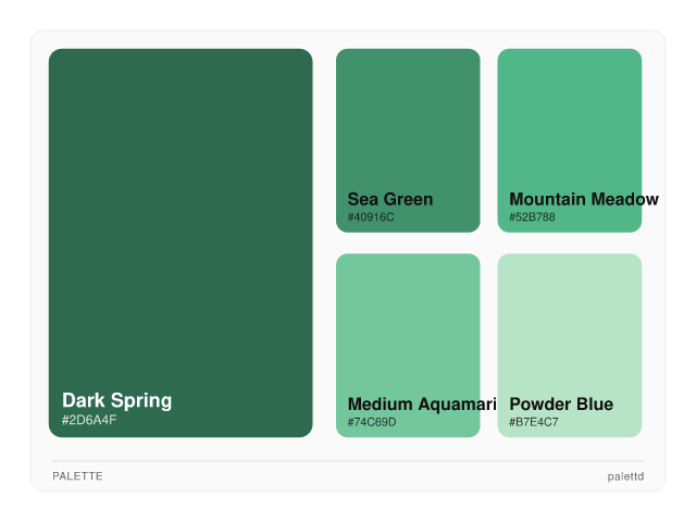 rgb(45, 106, 79)hsl(153, 40%, 30%)